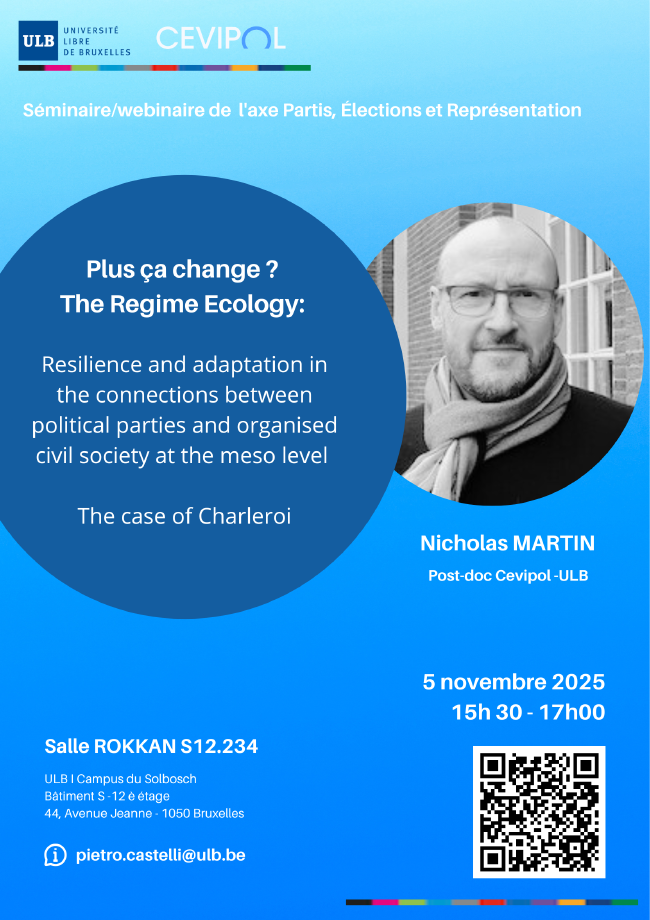 Séminaire/webinaire de l'axe Partis, Élections et Représentation with Nicholas Martin, Cevipol-ULB